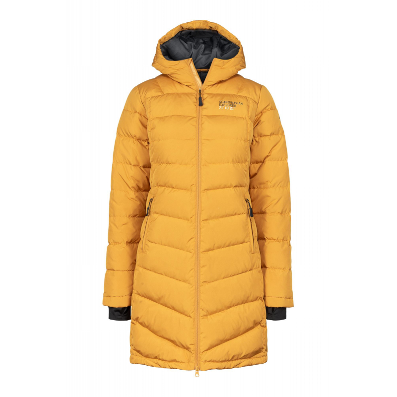 Una chaqueta de plumas ligeramente más larga,...
