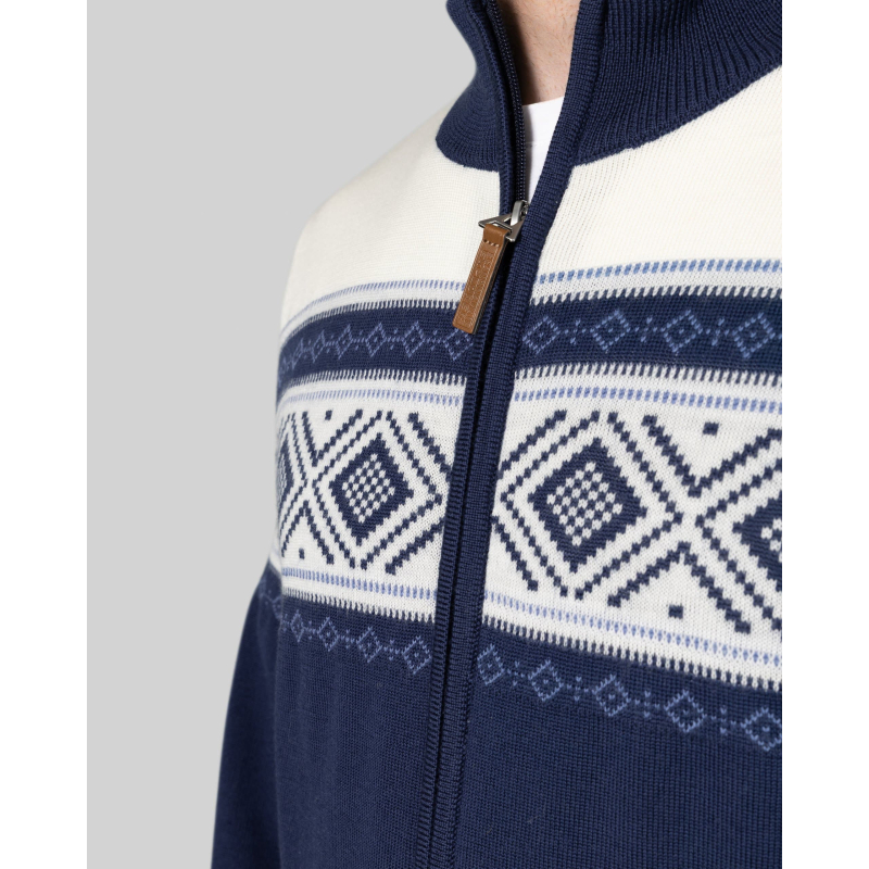 Genseren transporterer fukt effektivt og motvirker lukt, noe som gjør at den kan brukes flere dager uten vask. Den er enkel å vedlikeholde, slitesterk og laget av fornybar, biologisk nedbrytbar ull – et mer bærekraftig valg for både hverdagsliv og tur. Den klassiske mønsterstrikken og den diskrete skinnpatchen på ermet gir et tidløst uttrykk.